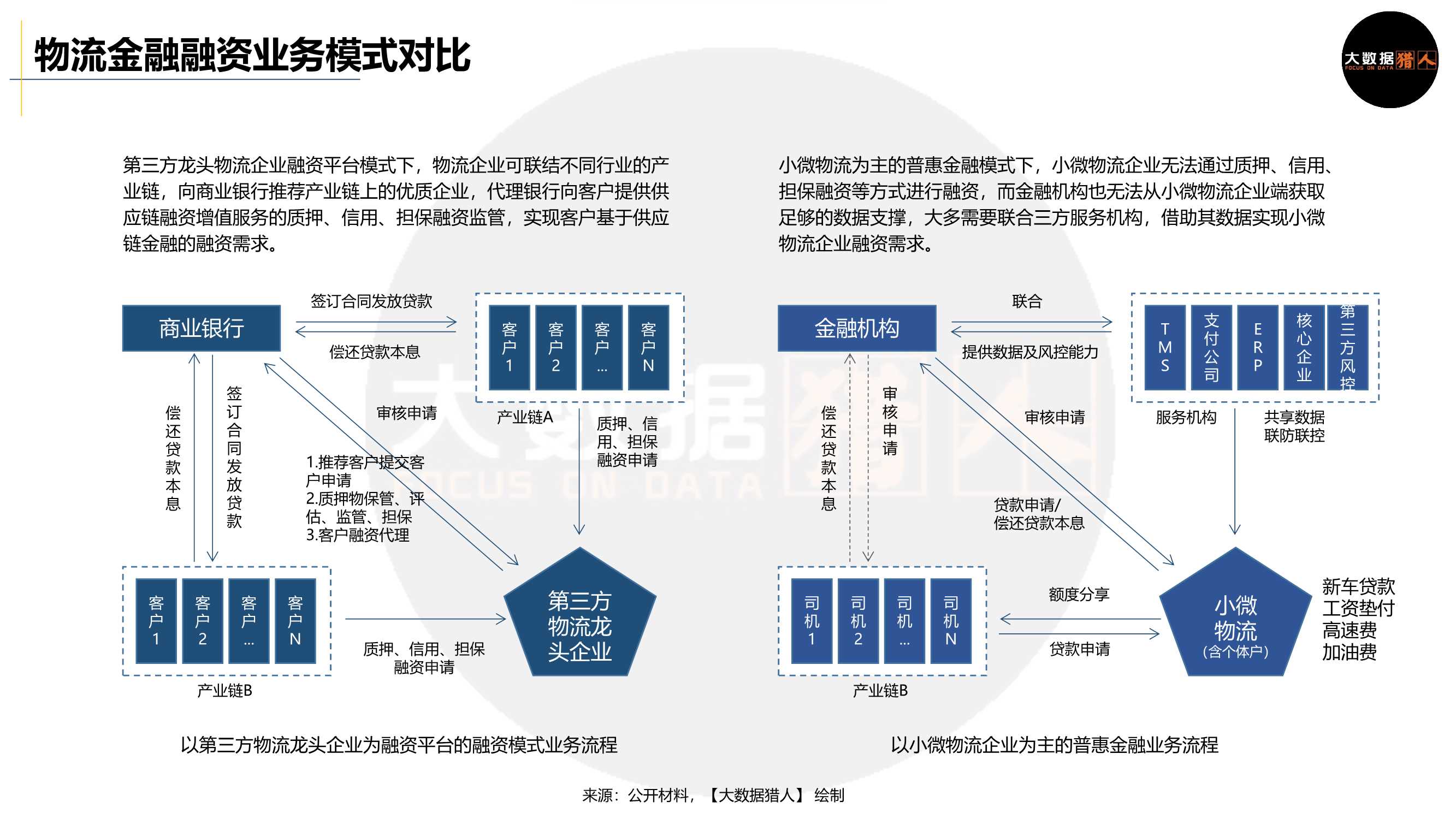第三方龙头企业掌握合作的物流企业的在该体系下的订单情况、收入情况、运力情况及运营持续时间等金融机构授信刚需的核心数据。