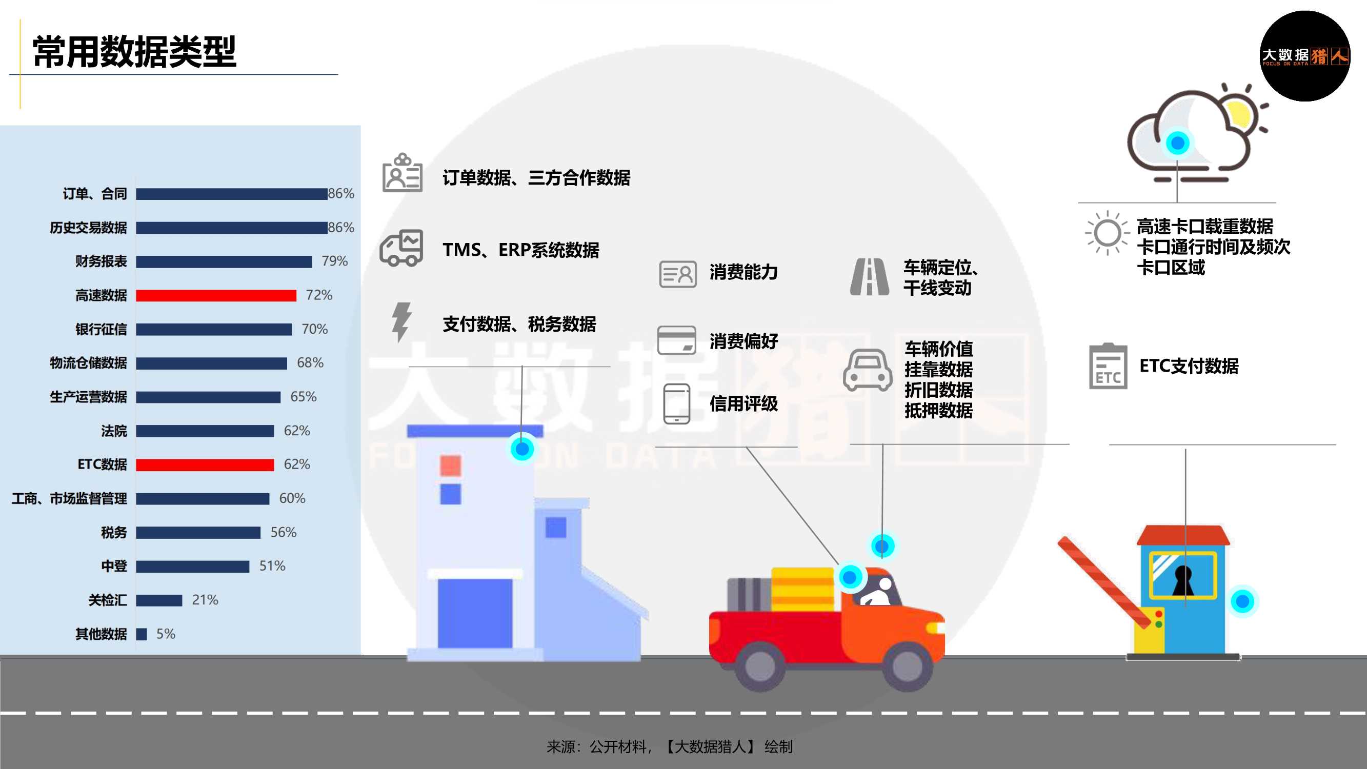 其中随着这两年部委的数据开放,高速卡口数据及ETC支付数据也被相关企业在物流普惠金融业务中使用,且得到很好的效果提升。