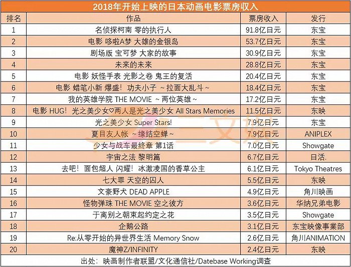 接下来,让我们来看看2018年度日本动画电影产业市场,有什么值得我们关注的地方。