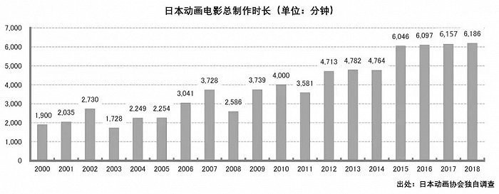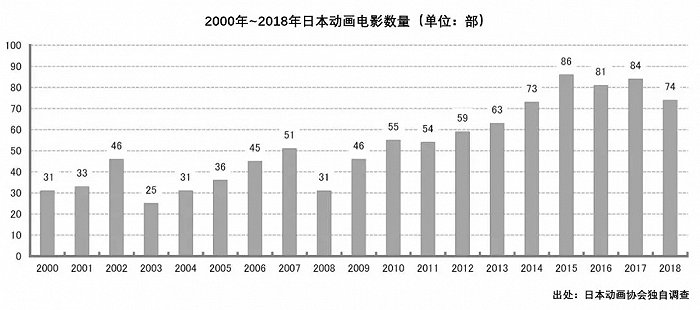尽管如此,从长期来看,制作、上映的作品数量还是有向上增长的趋势。从2000年到2009年,日本发行的动画电影从每年30部左右,增加到了40部以上。然后,在过去5年里,作品数量又从每年70部增加到了80部。
