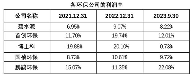 答:根据各环保上市公司的财务披露,与我司相同经营范围的上市公司进行比较,见下表: