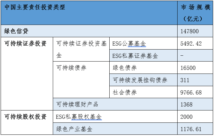 《中国责任投资年度报告2021》将中国主要责任投资(广义ESG投资,仅涉及ESG三项任意一项即可)类型分为绿色信贷、可持续证券投资和可持续股权投资。同时,可持续证券投资分为可持续证券投资基金(包括ESG公募基金和ESG私募证券基金)、可持续债券(包括绿色债券、可持续发展挂钩债券和社会债券)和可持续理财产品,可持续股权投资分为ESG私募股权基金和绿色产业基金。其中,绿色信贷余额市场规模最大,达到14.7万亿元,绿色债券次之,规模为16500亿元。ESG公募基金市场规模虽不如绿色信贷和绿色债券,却是个人投资者最常见的ESG投资标的,许多个人投资者越发倾向于投资ESG公募基金。随着英美日的三家大型养老金机构联合发布了一份题为《携手共建可持续的资本市场》的公开声明后,中国的养老保险基金也逐渐开始关注ESG领域。养老基金作为大体量资产所有者,其长期投资属性与ESG投资相契合,是ESG投资的重要载体和重要推动力。据《中国养老金发展报告2021》介绍,国际资产管理机构和海外大型养老基金在ESG投资方面都有一定的实践,国内养老基金资产管理机构正积极参与并探索。社保基金作为养老金体系中的战略储备部分,成为中国养老金在ESG投资实践中的先行者。据全国社保基金理事会披露,“十三五”时期全国社保基金投资收益累计6857亿元,基金规模从期初的15083亿元增加到24591亿元,年均增长率达到10.27%。目前国内ESG投资的主流仍集中于股票、绿色债券、公募基金,均不属于养老基金政策界定的主要配置领域。养老基金的ESG投资还面临着一系列困难,包括可持续投资占比不高、信息披露缺乏统一标准等。