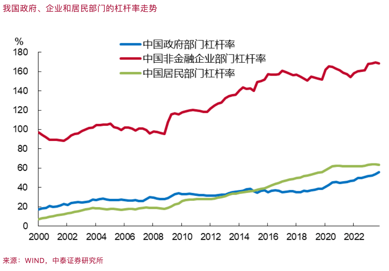 这就导致政府部门内部的债务结构失衡。为应对失衡,我国正采取地方化债和中央发特别国债的举措。由于我国政府部门的杠杆率总水平并不算很高,故通过让地方与中央在事权和财权方面的对称性提高来改善中央与地方政府的债务结构。例如,今年财政预算中决定中央财政发行1万亿元超长期特别国债,另外继续给地方政府发行再融资特别债的额度,以降低地方政府的债务成本。