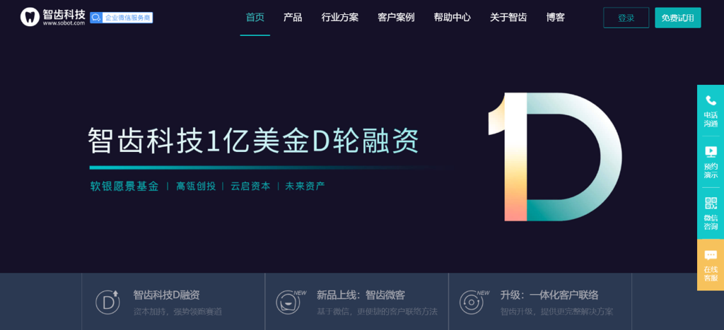 智齿科技成立于2014年5月,是一家提供智能客服服务的互联网创业企业。智齿科技将自然语言理解、机器学习及大数据技术进行有效整合,构建了包括云呼叫中心、智能机器人客服、人工在线客服、工单系统、智齿360、智能外呼机器人在内的智能全客服平台和智能外呼平台,为企业用户提供多样化的智能客服服务,为用户解决移动时代、体验经济环境下传统客服所不能解决的企业客服痛点。智齿科技于2018年4月获得由云启资本领投,耀途资本、上海原龙投资和博雅盛景等机构跟投的1.5亿元人民币B+轮融资。