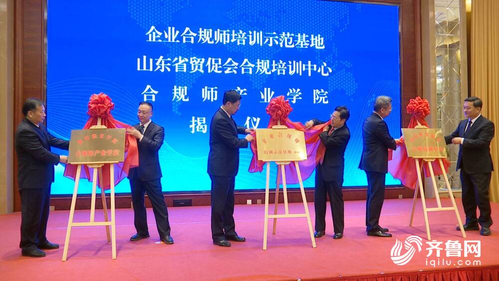 与会嘉宾为企业合规师培训示范基地(潍坊)、山东省贸促会合规培训中心、合规师产业学院进行了揭牌,发布了企业合规师专业水平培训项目。