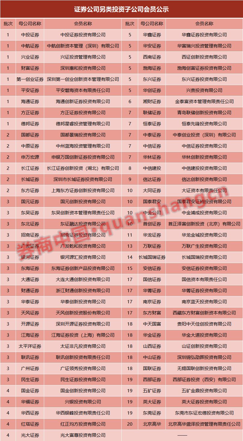 截至目前,中证协网站已公示第二十批证券公司私募投资基金子公司及另类投资子公司会员名单,已有73家券商设立另类投资子公司。