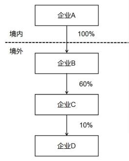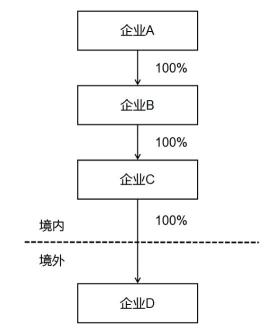 投资架构如上图,居民企业C直接持有外国企业D股份,符合17公告规定条件,应作为报告人填写《报告表》,居民企业A和居民企业B未直接持有外国企业股份,无需填写《报告表》。