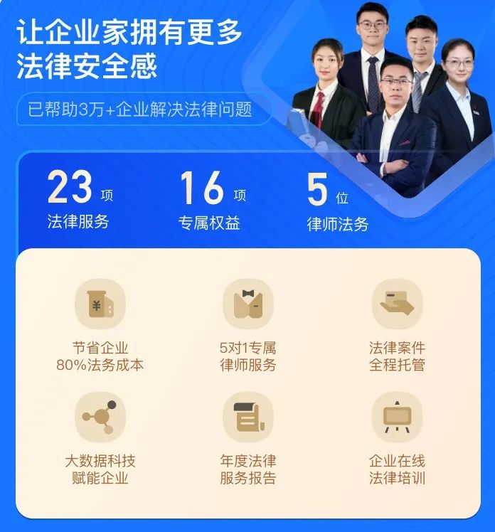赢火虫聚焦产研资源,结合数万企业客户服务经验和全国律师资源的优势,在2021年底重磅推出【赢火虫云法务】产品,打造中小企业的云端法务部。