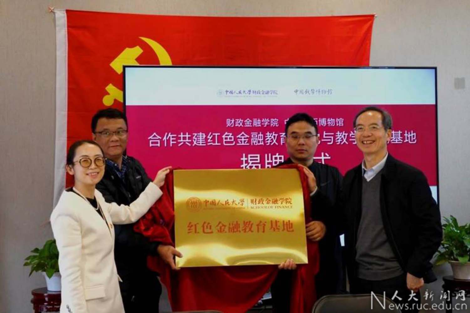 双方共同为“中国人民大学财政金融学院红色金融教育基地”揭牌。