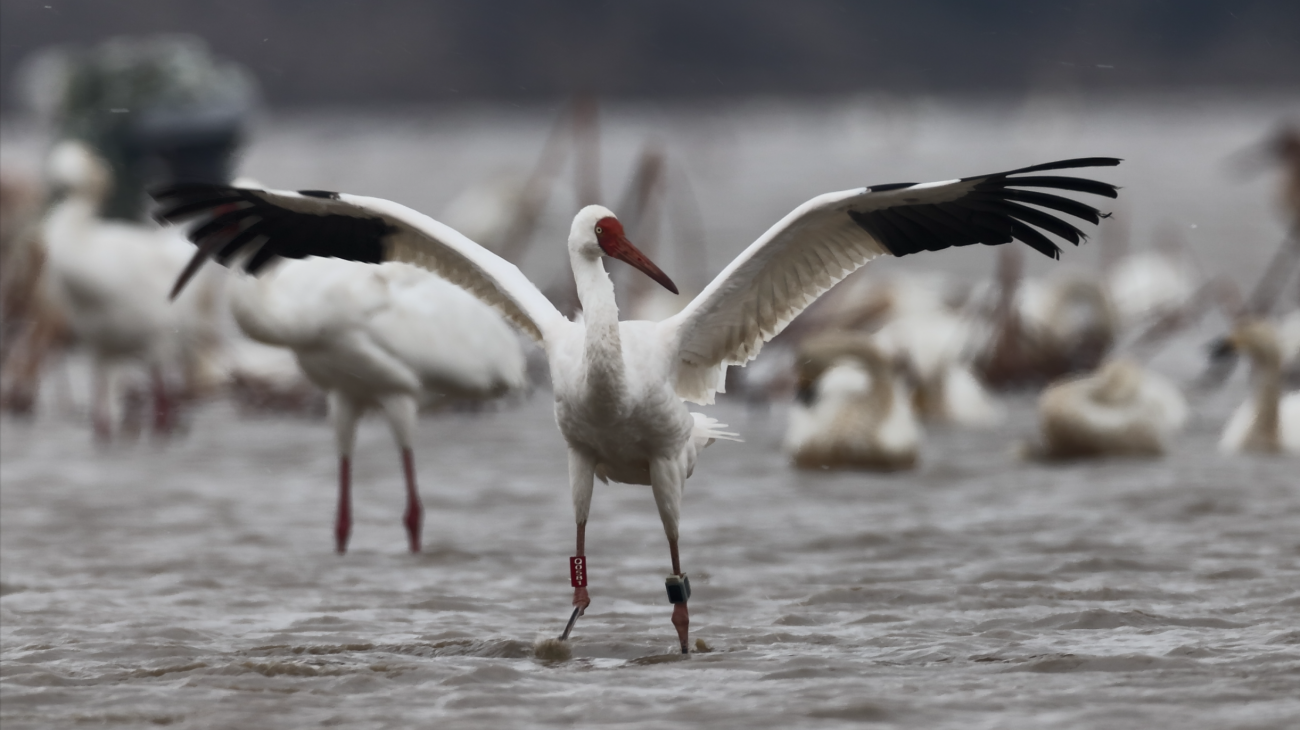 眼下正值鄱阳湖白鹤等候鸟集群北迁时节,鄱阳湖多部门组成的护鸟队伍在湖区候鸟迁飞沿线巡护,为鄱阳湖候鸟北迁安全护航。