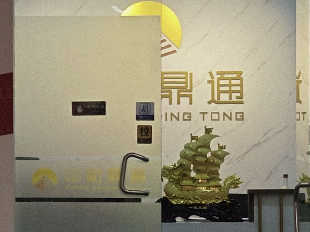 “中财鼎通”的名字未在指引牌上显示。