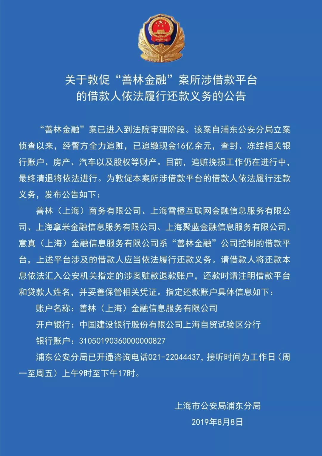 3丨警方披露善林金融案最新进展:已追缴16亿余元。《每日经济新闻》记者获悉,上海市公安局浦东分局微信公号日前披露“善林金融”案最新进展,目前该案已进入法院审理阶段。该案自立案侦查以来,经警方追赃,已追缴现金16亿余元,查封、冻结相关银行账户、房产、汽车以及股权等财产。警方表示,目前追赃挽损工作仍在进行中。