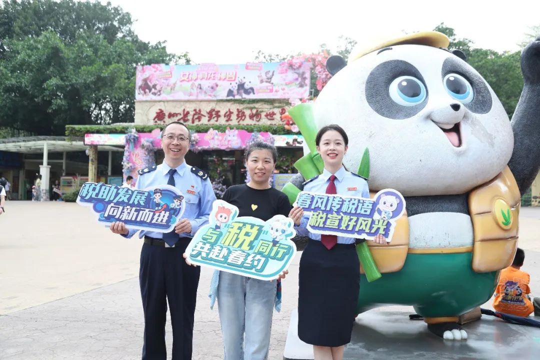 在广东,国家税务总局广州市番禺区税务局干部走进广州长隆景区,向游客宣传解读税费优惠政策,在税惠“春风”的吹拂下,延伸税收宣传服务触角,营造浓厚的税收宣传氛围。