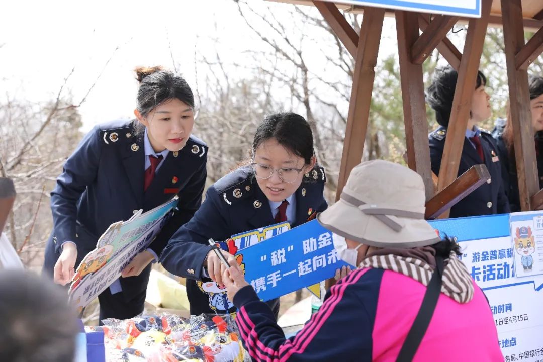 在大连,国家税务总局大连金普新区税务局组织税宣小分队走进辖区的大黑山风景区,邀请市民、游客参与打卡活动,让他们在互动中了解和学习了税收知识。