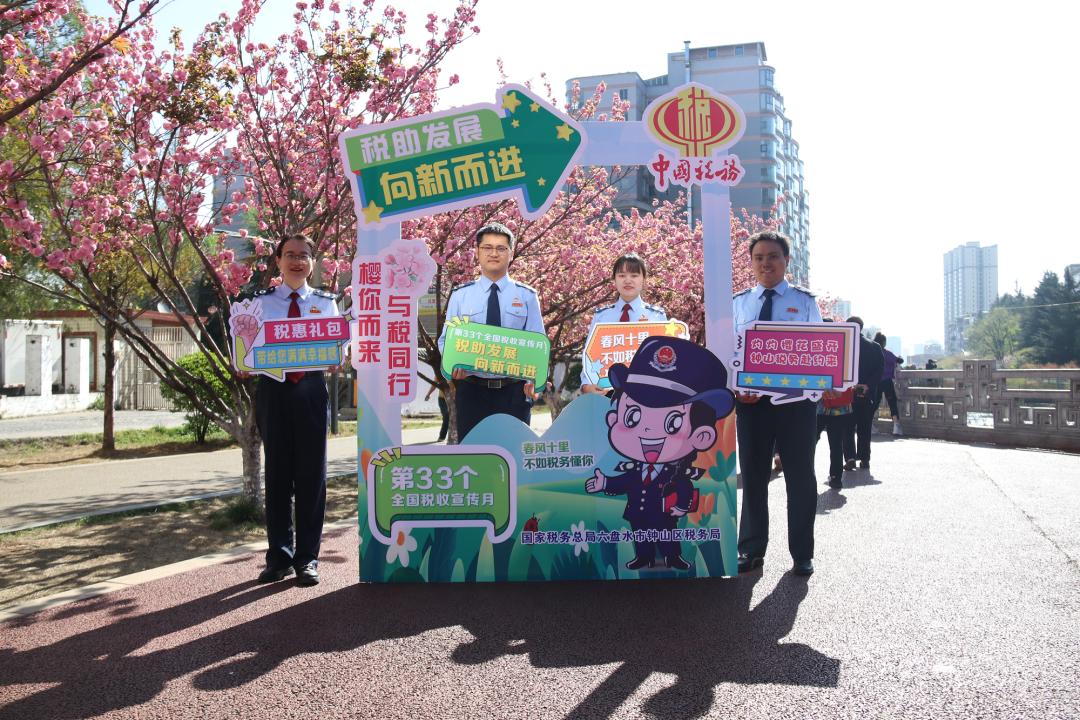 在贵州,国家税务总局六盘水市钟山区税务局联合区文旅局、区商务局共同开展“樱你而来 与税同行”主题税收宣传月活动,联合宣传小分队走进沿街商铺,发放宣传册和“行业税收优惠‘码’上晓”贴纸。