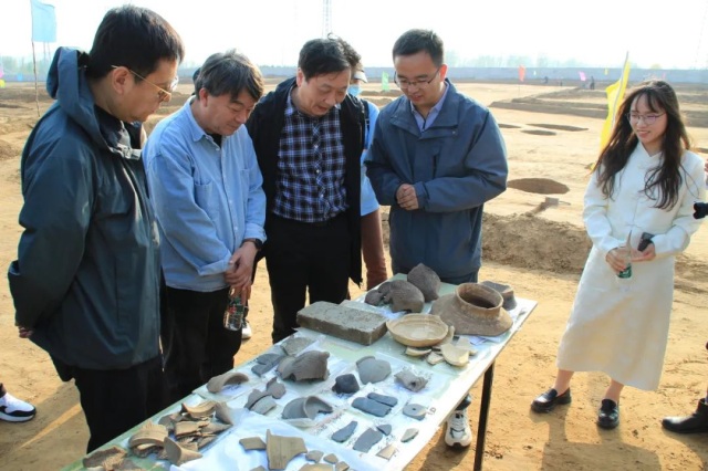 4月9日,课题组到访河南省文物考古研究院新郑工作站。河南省文物考古研究院商周考古研究室主任樊温泉研究员,带领课题组成员先后考察调研郑韩故城后端湾综合遗址、郑国车马坑遗址博物馆、郑韩故城北城门遗址、航空港区郑州财税金融学院考古工地、将军冢遗址工地以及港区工作站等地。