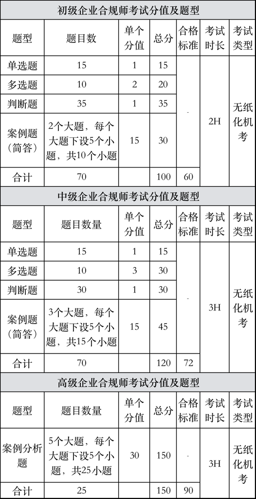 2.分级科目:《企业合规事务管理(初级)》《企业合规事务管理(中级)》《企业合规事务管理(高级)》。