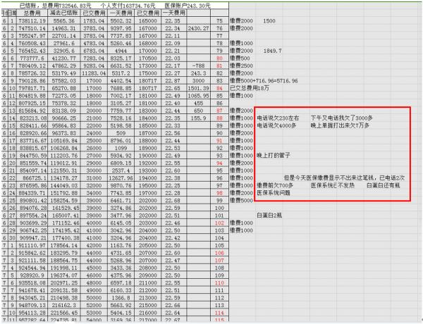“最初怀疑医院违规收费的是母亲和姑妈,我母亲每天都会问(医护人员)父亲有没有做透析?我姑妈是老会计,她每次交完费用,会让ICU的护士打一个单子,看看上面的费用结余。累积了数十张单子之后,做了一个Excel表,根据国家医保目录和芜湖市医保支付的有关政策,推算出每天需要自费的大致比例。”