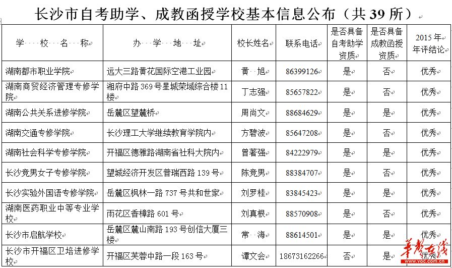 2、长沙市自考助学、成教函授学校基本信息公布
