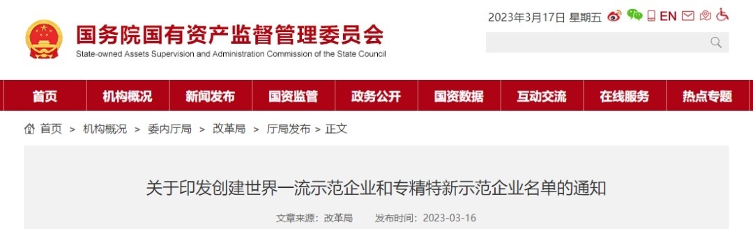 207家企业在列!国务院国资委公布创建世界一流示范企业和专精特新示范企业名单