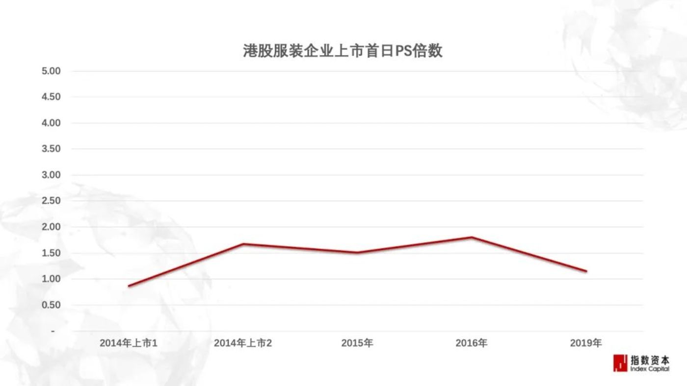 ▲港股服装企业上市首日估值趋势(注:2013年、2020年和2021年无服装企业登陆港股;图源:指数资本)