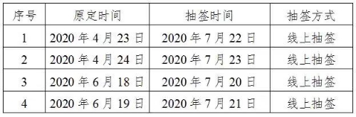 受新冠肺炎疫情影响,国家知识产权局商标局决定延期举行商标注册同日申请抽签,并将抽签方式由线下抽签变更为线上抽签,具体时间安排如下: