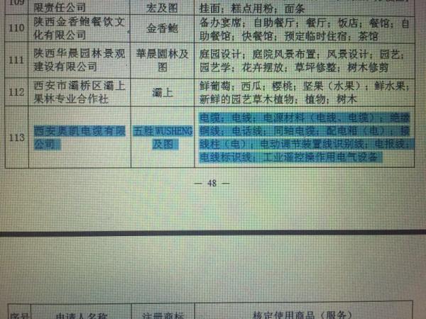 值得注意的是,西安奥凯电缆有限公司的注册商标和陕西奥凯有限公司注册商标相同,均为“五胜WUSHENG ”;且两个公司拥有的“陕西省著名商标”使用商品名录也相同,均为“电线;电源材料(电线、电缆);绝缘铜线;电话线;同轴电缆;配电箱(电);接线柱(电);电动调节装置线识别线;电报线;电线标识线;工业遥控操作用电气设备”。