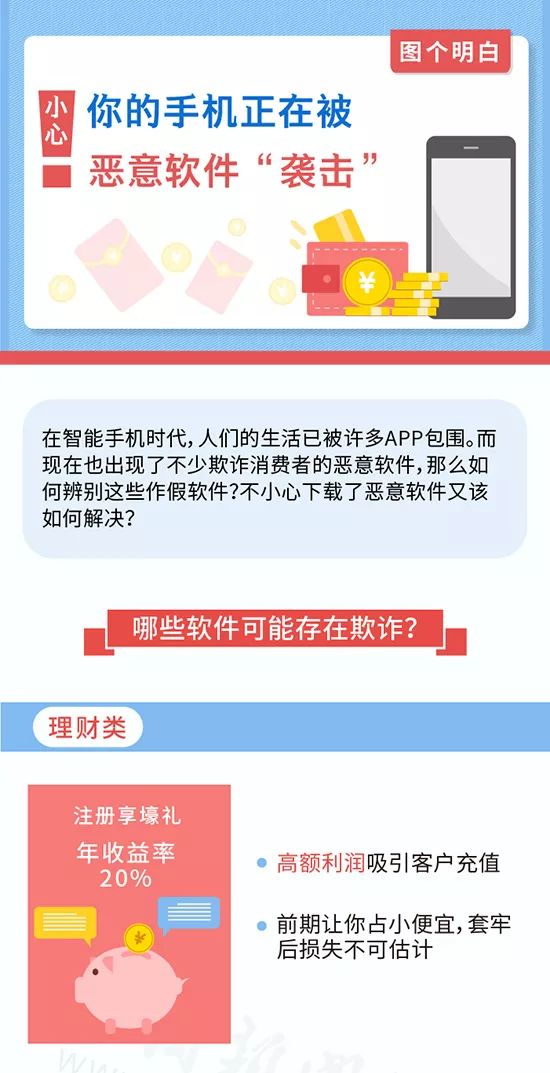 在不轻易泄露个人信息的同时,大家还要注意,小心自己的手机被恶意软件入侵,避免一步步落入诈骗的陷阱,下面这张长图,就清楚描述了恶意软件的“袭击”流程,赶紧分享给家人和朋友,远离各种恶意软件