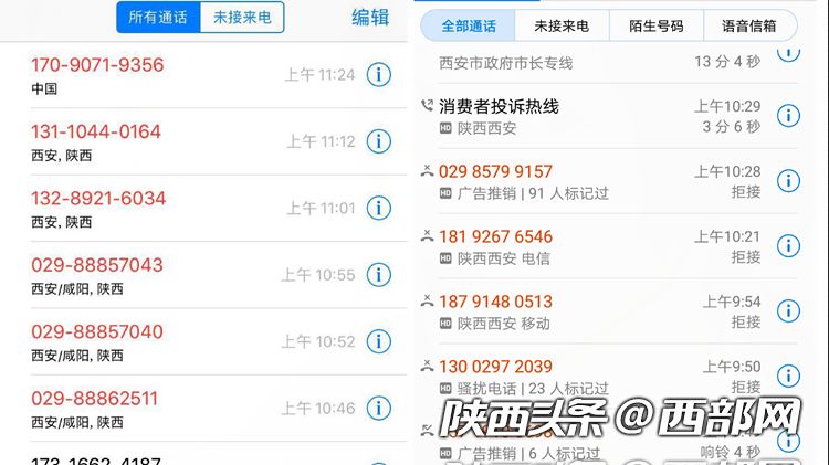 为了尽可能降低骚扰电话对自己生活的影响,秦先生不得已只能选择对陕西的号码拒接。“因为骚扰电话号码不同,所以也没有更好的方法去避免。只能是看见陕西的来电号码直接拒接。有时候也会有拒接错的情况。”